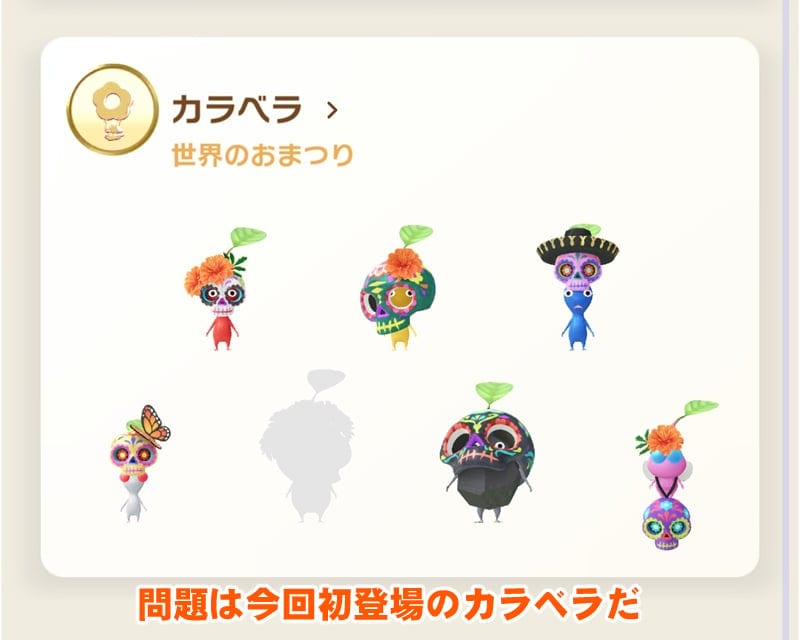 全7種類のカラベラを身に付けた子たちはもちろん、ハロウィン関連の各種デコピクミンはコンプリートできただろうか。