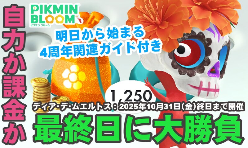 位置情報ゲーム『ピクミン ブルーム』のディア・デ・ムエルトスイベントもついに本日(10/31)が最終日。