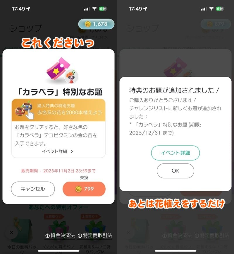 アプリ内よりお得なパックを買い足しコインを握りしめてショップに駆け込む。