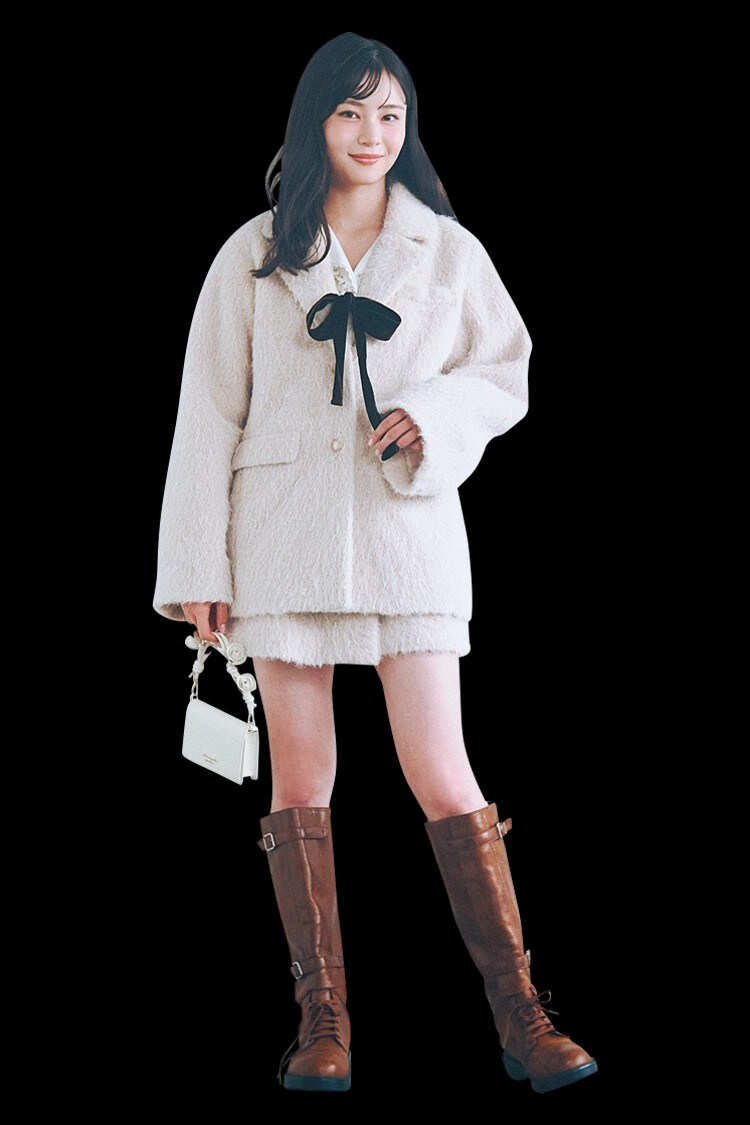 Cordinate 膨張しがちなホワイトアウターは肌見せで抜け感を