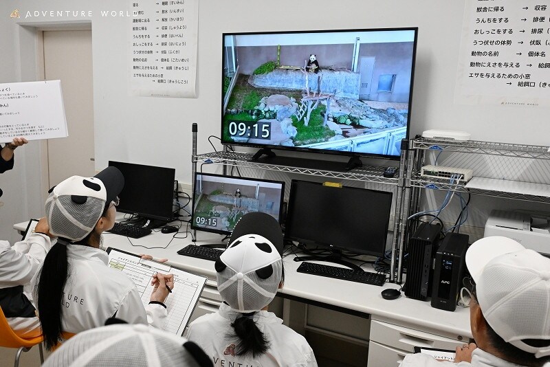 竹の違いを観察して、パンダの食事とする竹はどれがいいのかを選別したり、パンダの行動を映像で観察しながら飼育日報を記録するなど、飼育スタッフが実際に行っていた本格的な飼育業務が体験できます。