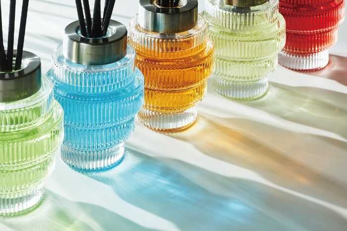 光や照明に応じて液体がゆらめき、香りとともに暮らしを整える演出に。リビングや寝室、仕事部屋など、シーンに合わせて香りを楽しめます。