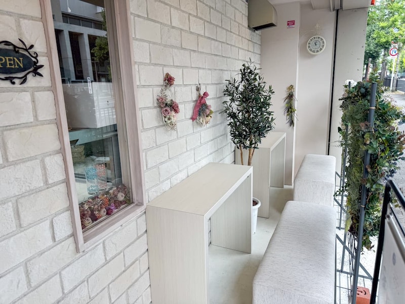京都市営地下鉄烏丸線「北大路駅」より徒歩約4分。京都の落ち着いた街並みの中に、白いレンガ調の外観が目を引く「Patisserie du Jour Jouissance」があります。