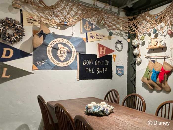 「Disney HARVEST MARKET」では、各店舗にキャラクターをテーマにした個室を展開。期間限定でクリスマス仕様の装飾が施され、まるで物語の中にいるような空間に変わります。