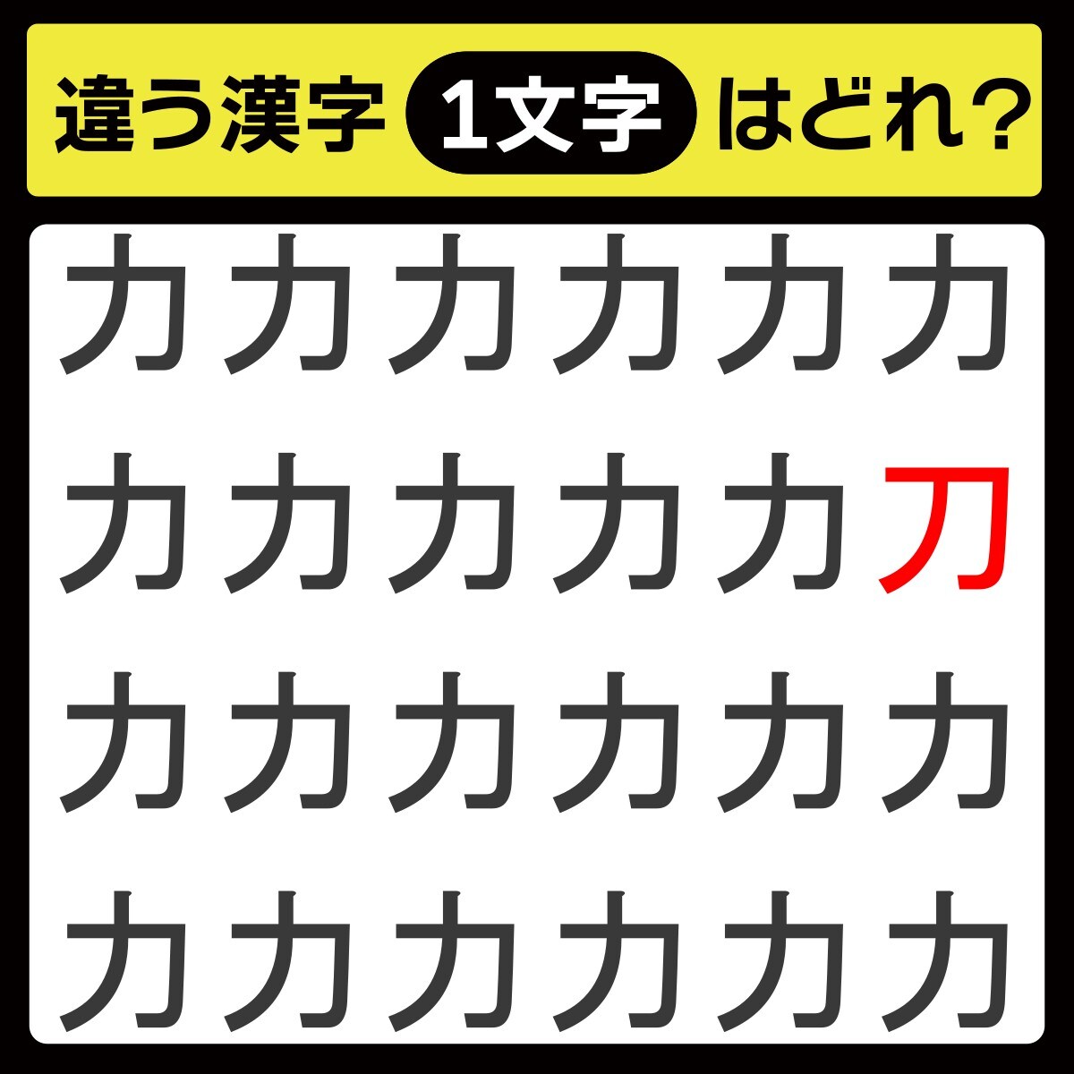 毎日配信中「毎日脳トレ」の時間です! 本日のクイズは「漢字のまちがい探し」に挑戦♪ 同じ漢字が並んでいるように見えますが、実は1つだけ違う漢字が……。よ~く探してみてください!