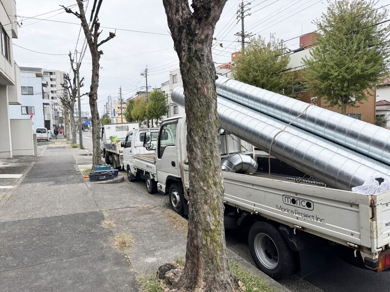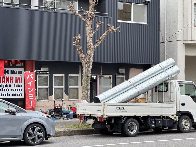 ラーメン二郎の看板なども見当たらなかったが、店内にはあるのかもしれない。空調はこれから設置するようで、取り付け前のファンが店外に置かれていた。