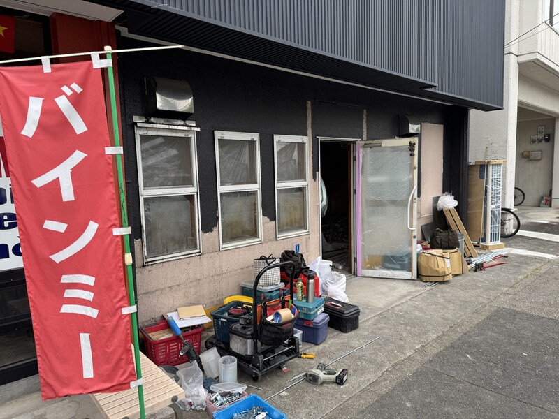 ラーメン二郎名古屋大曽根店に到着。店舗はまだ完成しておらず、工事中だった。