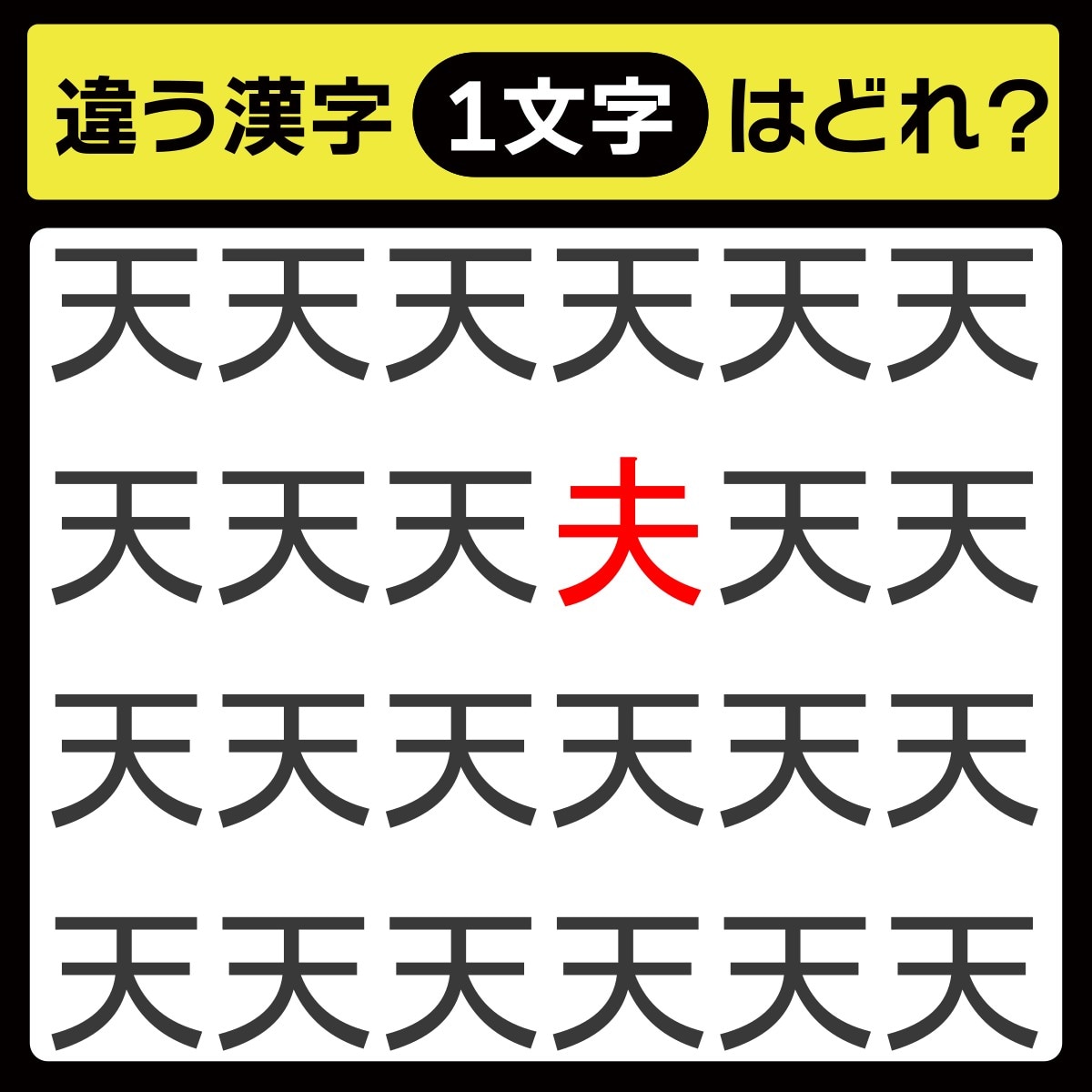 違う漢字は、上から2行目、右から3番目の文字でした!