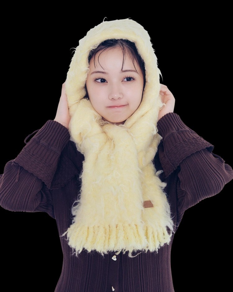マフラー 6,490円、リブニットトップス 8,250円/ともにdazzlin イヤーカフ 2,090円/GOLDY