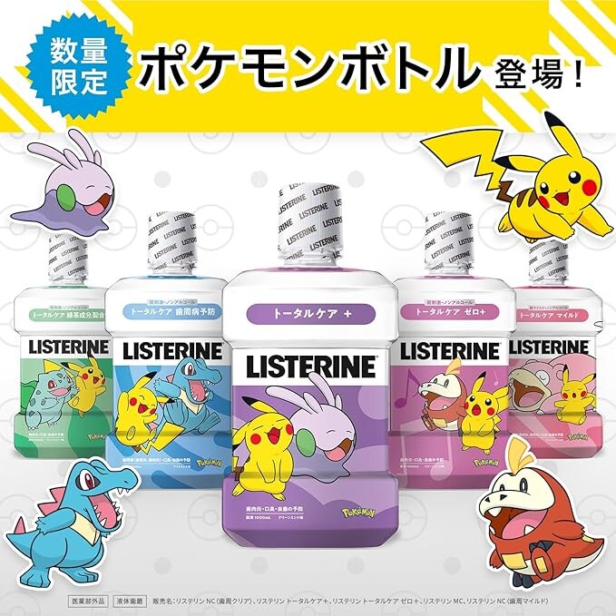 マウスウォッシュは“続けやすさ”が肝心です。リステリンの薬用「トータルケアプラス」は、原因菌殺菌(アルコール配合)で幅広い口内トラブルをまとめてケアできる医薬部外品です。1000mlの大容量に、ピカチュウ&ヌメラの限定ボトルで、家族の洗面台に自然となじみます。