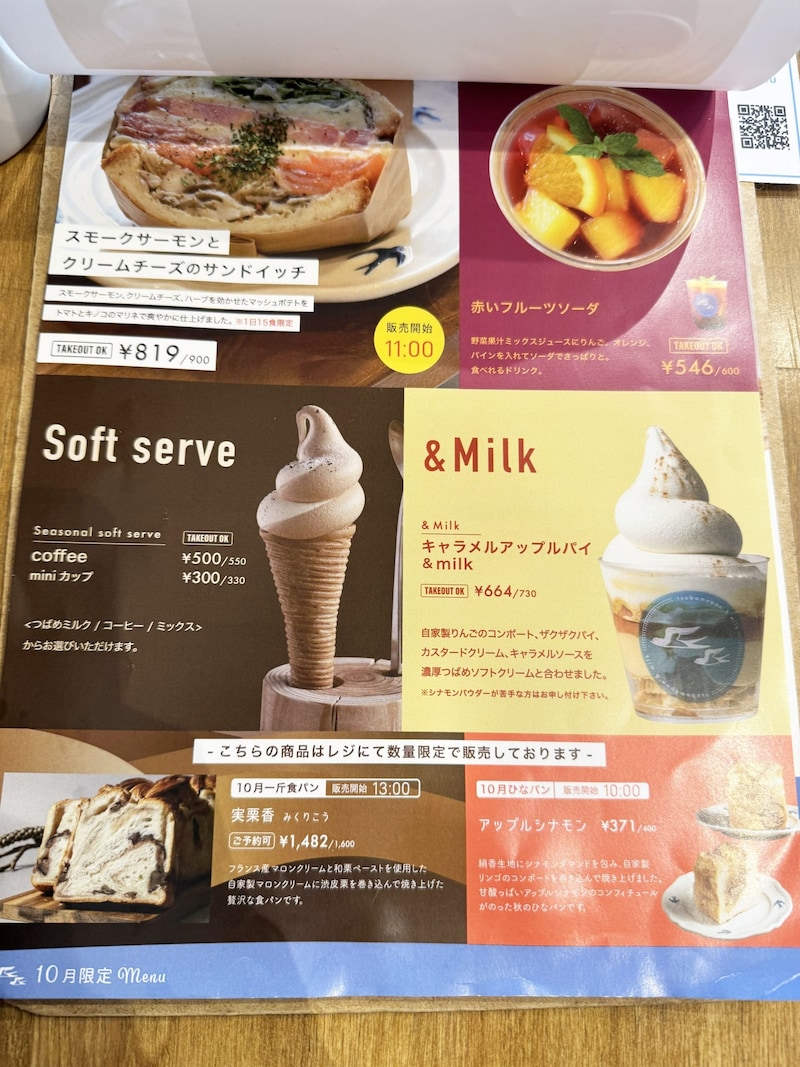 店内は広々としていて、白と木目調を基調とした雰囲気が癒やしの朝を与えてくれる。実に居心地がイイ。オーダーしたのはモーニングのカルボナーラトーストセット。そして名物のソフトクリームを追加。