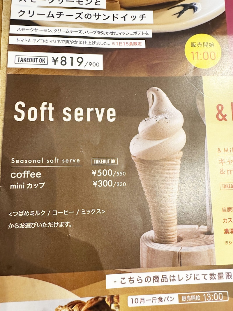 モーニングはミニソフトクリームをお得な価格でオーダーできるが、今回はフルサイズのソフトクリームをオーダー。朝からガッツリと糖質をゲットして身も心も癒やされたいから、あえて、フルサイズ。