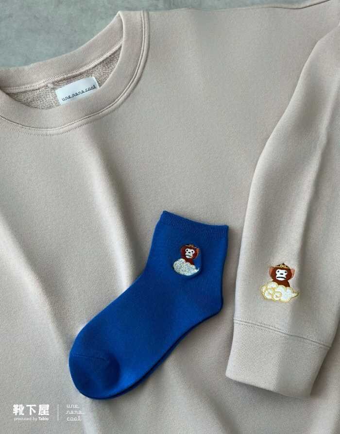 パジャマ購入者には、同じ刺繍を靴下に無料で施せる特別サービスを提供。もちろん、パジャマなしでも有料で刺繍可能です。