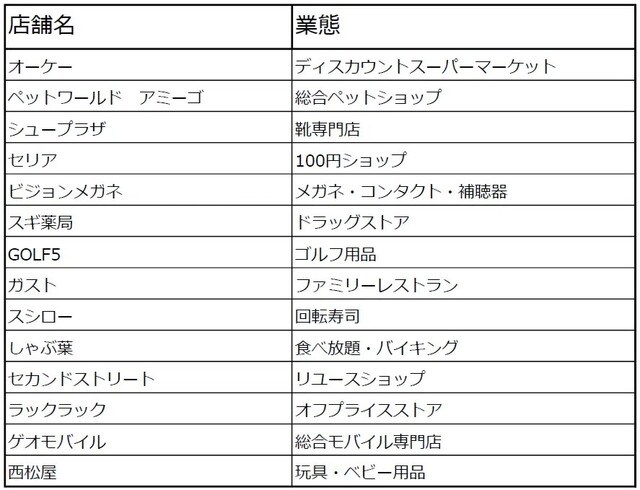 <出店テナント一覧>