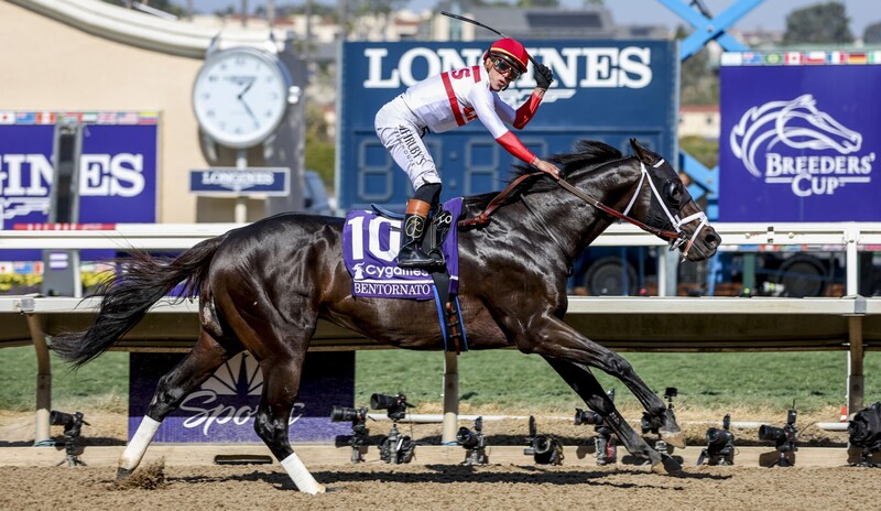 現地時間11月1日、アメリカ・デルマー競馬場で行われた、ブリーダーズカップスプリント(G1・ダ1200m)は、I.オルティスJr.騎乗、ベントルナート(牡4・J.ダンジェロ)が、逃げ切りを決めた。勝ちタイムは1:08.20(良)。2着にイマジネーション(牡4・B.バファート)、3着にドクターヴェンクマン(せん5・M.グラット)が入った。