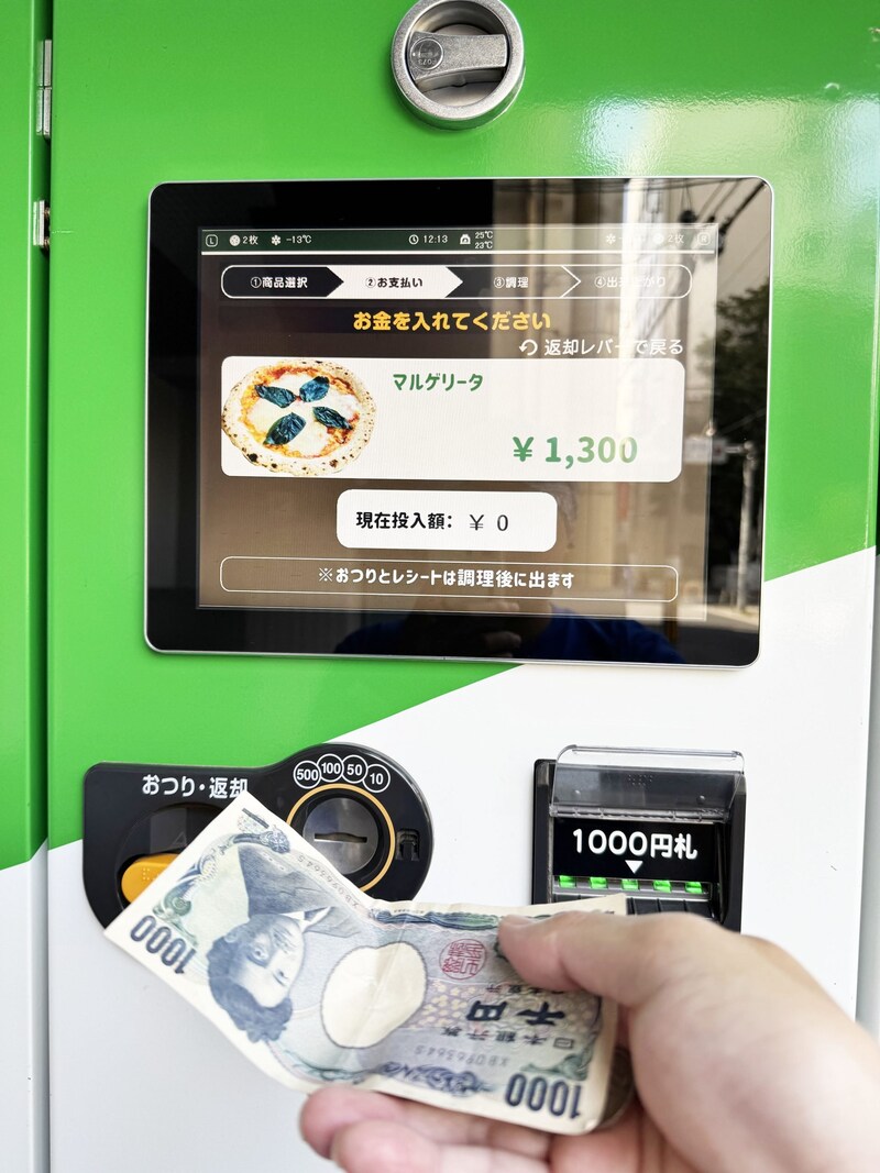 ここのピザ自販機では、支払いは現金かペイペイが可能でした。