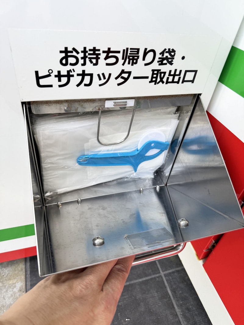 ピザ、鉄製の網、箱、袋、ピザカッター、あらゆるところにコストをかけている感があります。それなのに、本格的なピザを1300円で買えてしまうピザ自販機。凄まじく優秀すぎます。安すぎます。