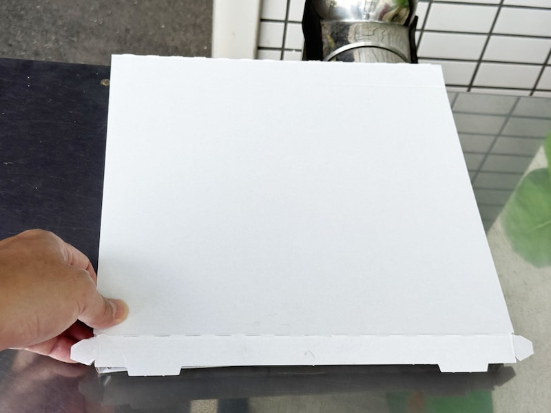 さっそくピザ箱のフタを閉じて、袋に入れて持ち帰りました。