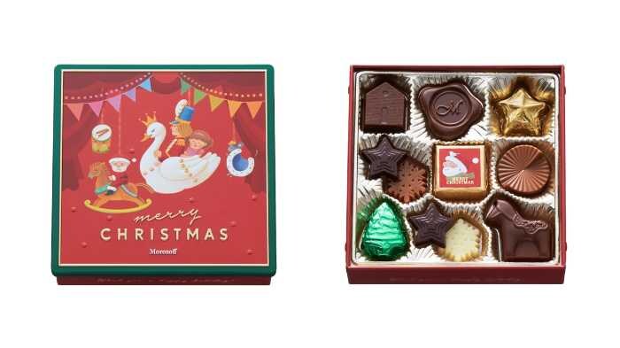 「クリスマスプレーンチョコレート」(11個入/702円)は、クリスマスモチーフのデザインがかわいい定番アイテム。モロゾフならではの上品な味わいが楽しめます。