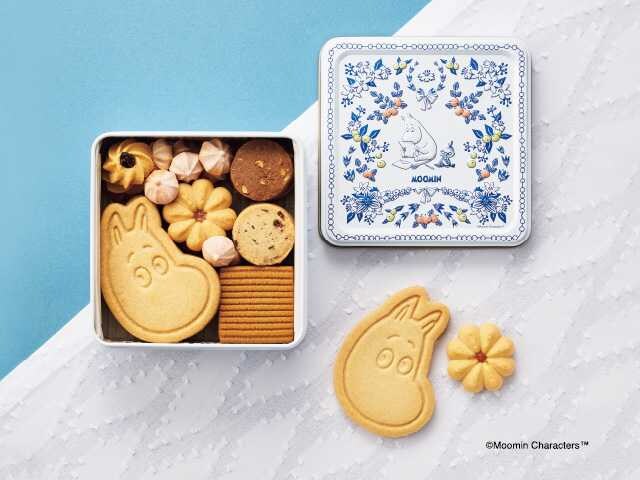 定常商品として展開される「ムーミン クッキー缶」(3,240円・税込)は、ムーミンとリトルミイの可愛らしいエンボスデザイン缶入り。中にはムーミン型クッキーとアソートクッキーを詰め合わせ。