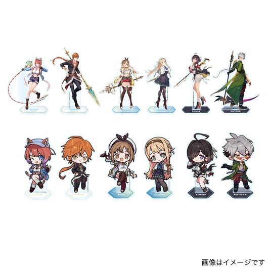 の3作品より、「ライザ」「クラウディア」「リアス」「スレイ」「ユミア」「ルトガー」の6名がグッズ化! 本コラボのために描き下ろされたミニキャライラストも可愛い~!