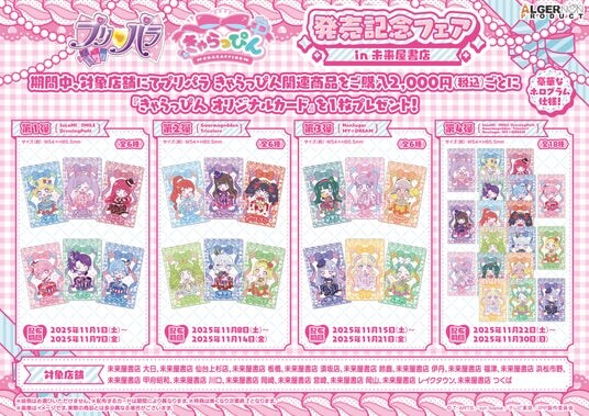 開催期間:2025年11月1日(土)~11月30日(日)期間中、「きゃらっぴん」対象商品を税込2,000円ご購入ごとに、未来屋書店限定の「きゃらっぴんオリジナルカード(ホログラム仕様)」を1枚プレゼント!