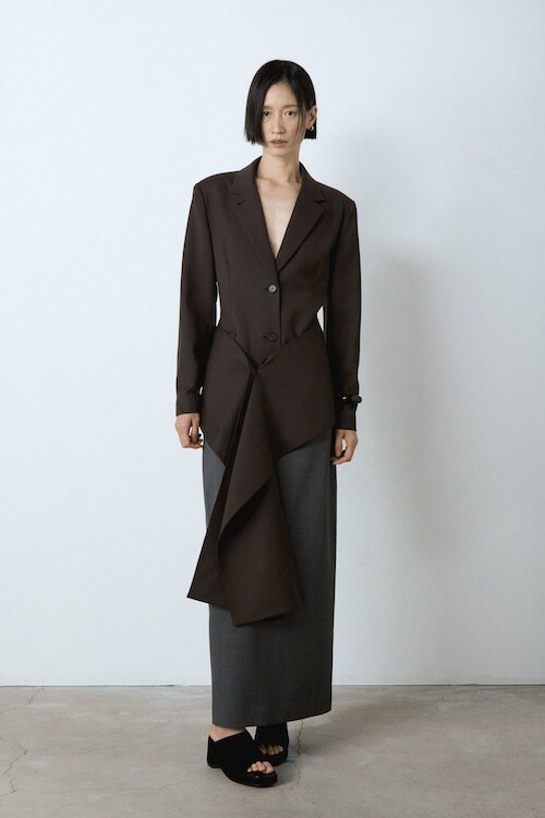 ミニマルな美しさで女性らしさをさりげなく引き立てる、日常でもドレスシーンにも万能に寄り添うジャケットです。