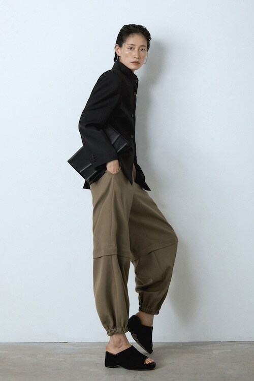 ウール混素材の心地よい肌触りと、リラックス感あるバミューダ丈へのアレンジも可能な2WAYデザインが魅力。