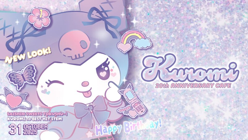 2025年は「クロミ」20周年のアニバーサリーイヤー! それを記念して2025年11月20日(木)から期間限定でオープンする「KUROMI 20th ANNIVERSARY CAFE」は、”憧れのギャルモデル”をコンセプトに、Y2Kをイメージしたイマドキファッションに身を包んだクロミの魅力が詰まったテーマカフェです。