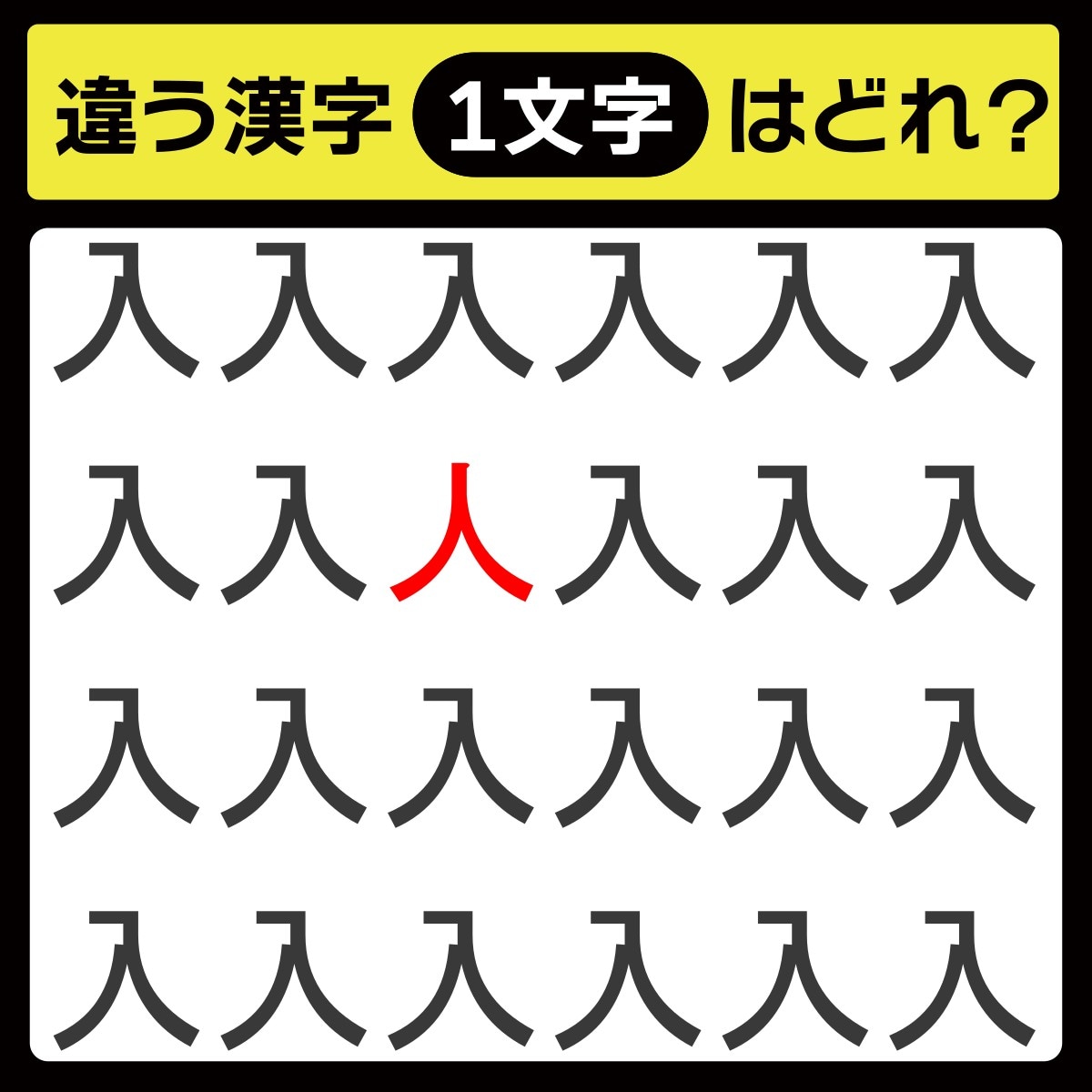 違う漢字は、上から2行目、左から3番目の文字でした!