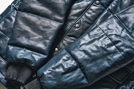 1970年代アメリカのレーシングシーンで着用されていた中綿入りのジャケットを、TRUE VINTAGEがヴィンテージとして所有していた。そのモデルを、革で再構築するという前代未聞のプロジェクトだ。希少な高級オイルドキップレザーで中綿を包み込む製法は、一般的なレザージャケットとはまったく異なる構造で、機能とデザインの両面から見直した。ヴィンテージの枠を超え、この世に存在しなかった一着として誕生したのだ。33万円