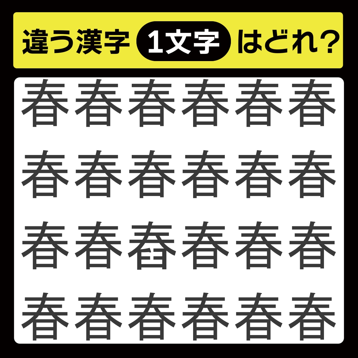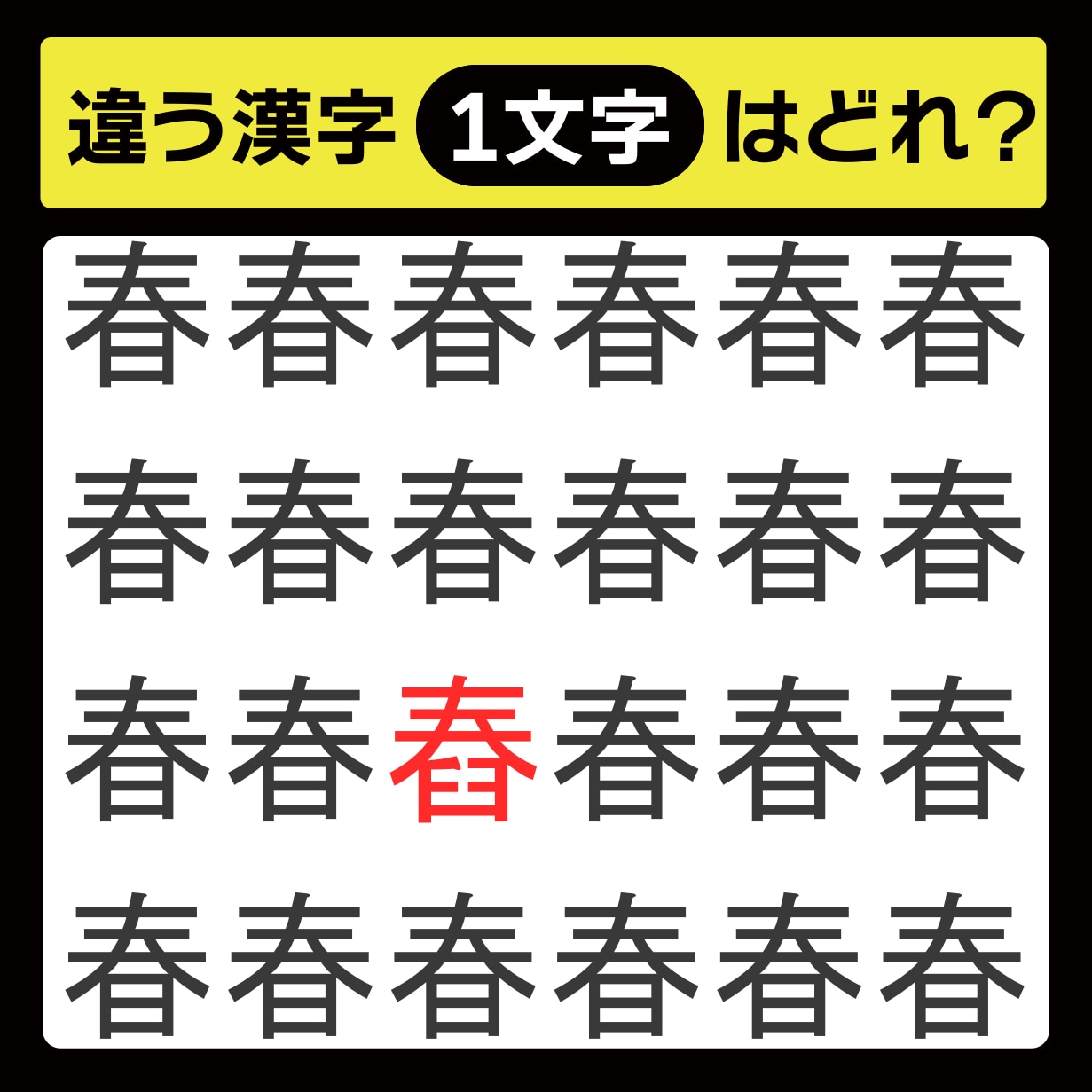 毎日配信中「毎日脳トレ」の時間です! 本日のクイズは「漢字のまちがい探し」に挑戦♪ 同じ漢字が並んでいるように見えますが、実は1つだけ違う漢字が……。よ~く探してみてください!