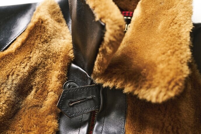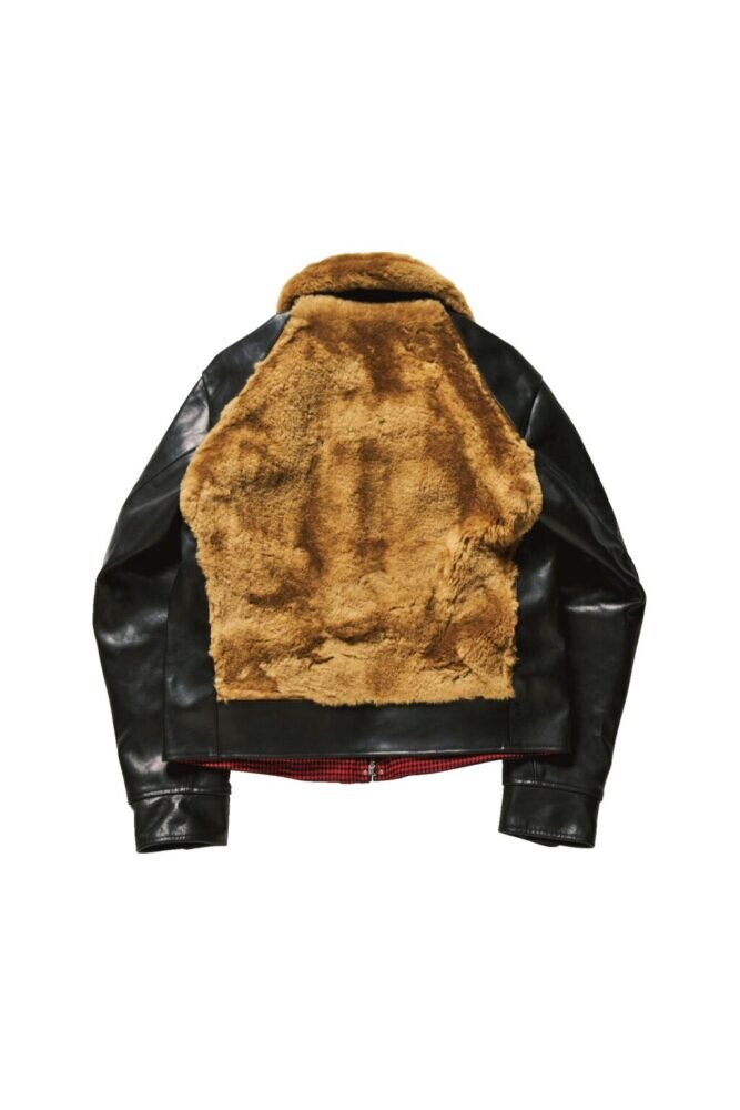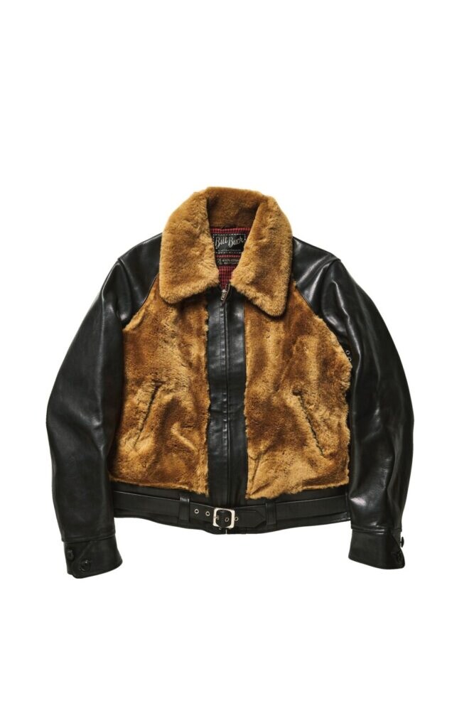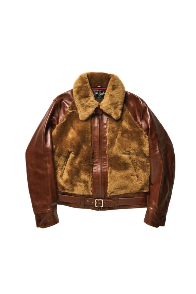 ビルトバックの冬の革ジャンを代表する、グリズリージャケットのリミテッドエディションをブラックレザー&ブラウンレザーで展開。毛足の長いキャメルカラーのリアルシープムートンと、オイルリッチ・ホースハイドの艶が織りなすコントラストこそ、このモデルを象徴する美学。’30sスタイルのクラシカルなディテールワークに加え、シープムートン特有の防寒性と上質な気品、そしてストリートに映える圧倒的な存在感を纏う1着だ。33万円