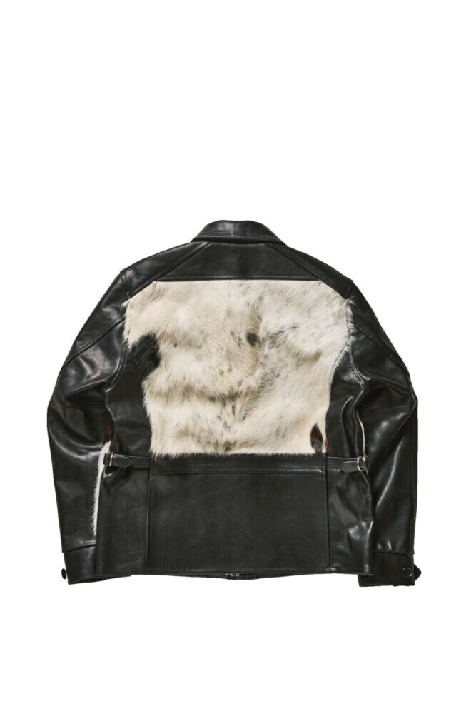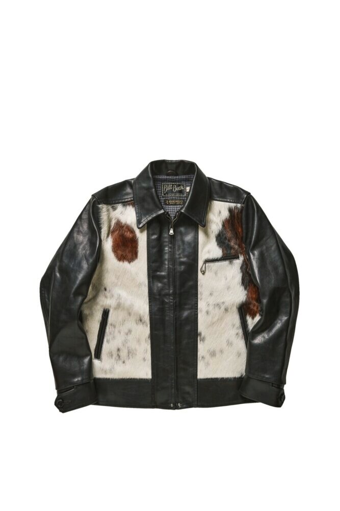 トリコロールカラーのカウヘアを贅沢にあしらった、ビルトバックの新提案。様々な種類のヘアオンハイドの可能性を模索し続けてきたビルトバックだからこそ実現した斬新な個性を宿す1着。しっとりとしたホースハイドに、二つとして同じ模様が存在しないカウへアの躍動感が際立つ。細部の作り込みやパーツチョイスはグリズリージャケットと同様’30sがイメージソース。クラシックと革新が融合するワンアンドオンリーだ。38万5000円
