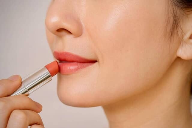 顔全体を明るく見せるには、血色感が命。リップとチークは同系色でまとめ、肌になじむコーラルやピンクベージュを選ぶのがおすすめです。