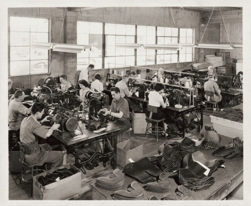 写真は「ダナー」の工場における生産風景。モデルによって生産工場を使い分けているが、[ダナーライト]と[マウンテンライト]の2大名作に至っては、いまもなおアメリカ・ポートランドに拠点を構える自社工場での生産を続けている。上質な素材のみを使用し、熟練の職人によるクラフトマンシップによって生み出されるプロダクトは、しっかりと手入れをすれば“一生モノ”として愛用することができる。