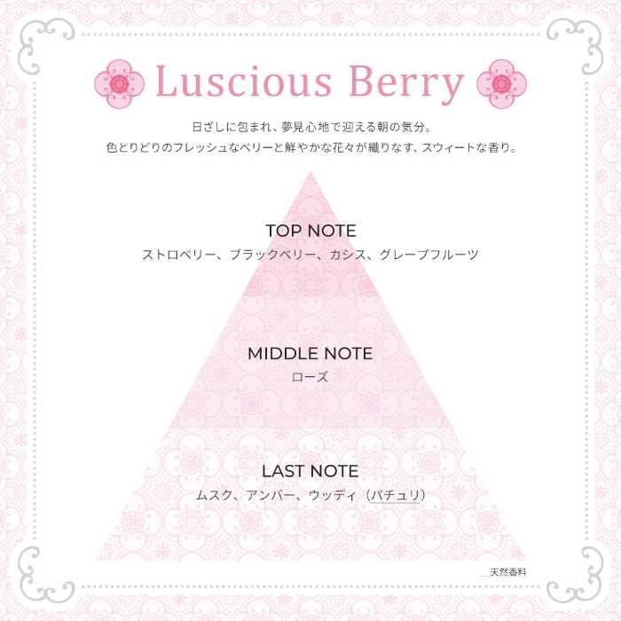 そして、フレッシュなベリーと花々が奏でる〈ラシャスベリー〉は、朝の光に包まれるようなスウィートな香り。どの香りも、特別な日を華やかに彩ります。
