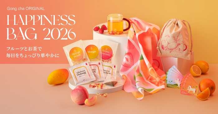 「Gong cha ORIGINAL HAPPINESS BAG 2026」(税込8,200円・送料込み)は、“フルーツとお茶”の世界を堪能できる豪華セット。