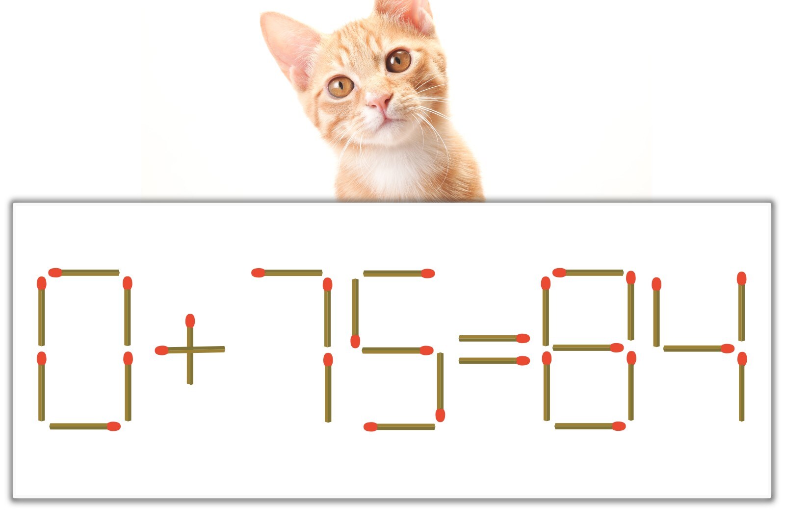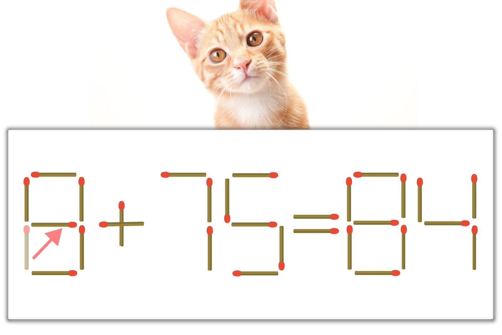 「0」のマッチ棒を1本、右上にスライドさせて「9」を作り、「9+75=84」にする。※解答は複数ある場合があります。