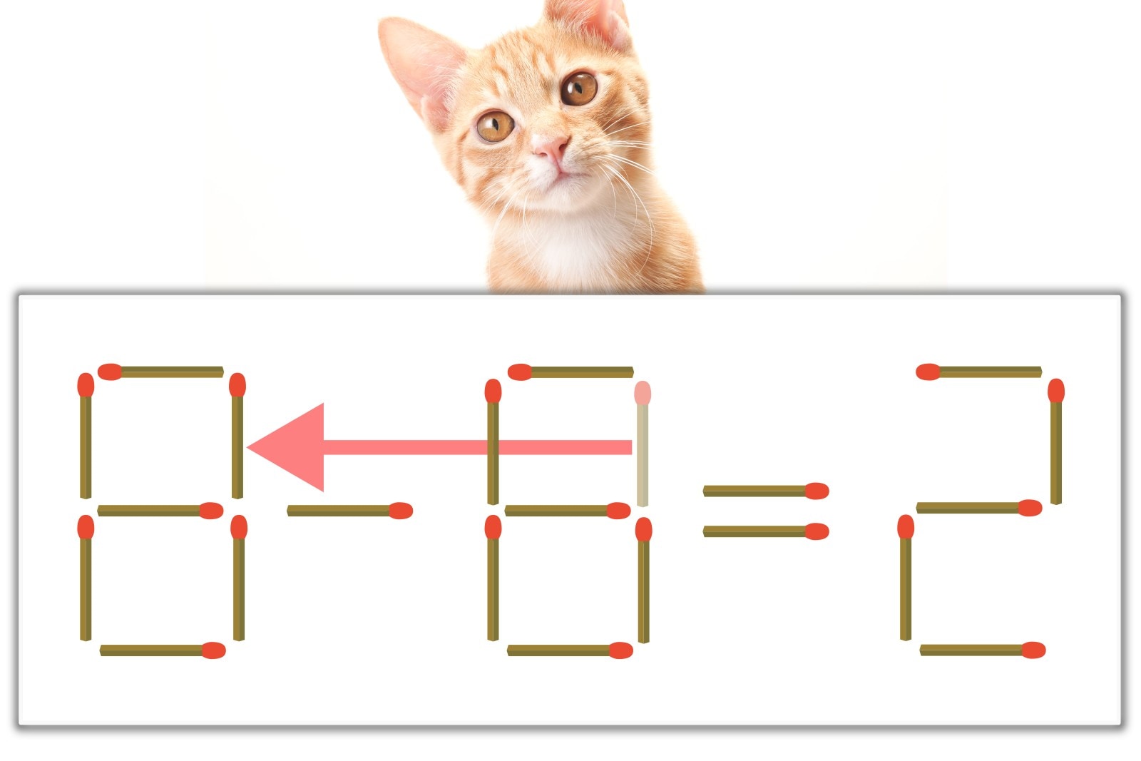 「8」のマッチ棒を1本、左にスライドさせて「8」を作り、「8-6=2」にする。※解答は複数ある場合があります。