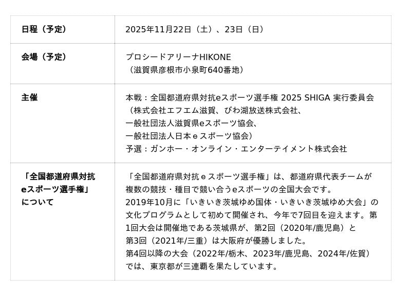 「全国都道府県対抗eスポーツ選手権 2025 SHIGA」概要