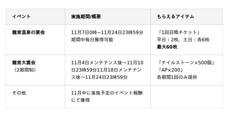 この度のアップデート実施を記念して、期間限定となりますが、「1回召喚チケット」や「テイルストーン」の配布、イベント報酬を含めて最大100回分の召喚に挑戦できる施策を実施します。