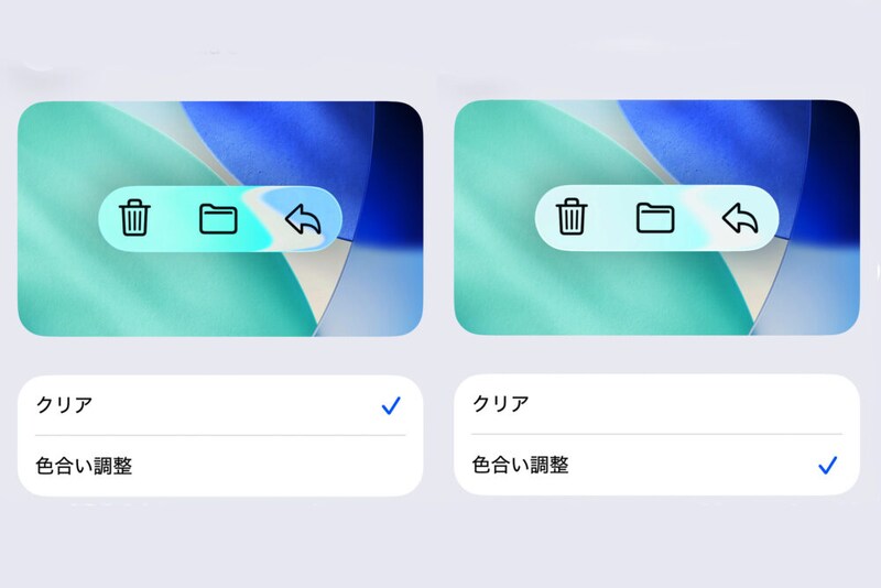 Liquid Glassの見え方は調整可能になった。透明度を下げて見やすくするか、それともガラスのようにクリアな表示にするかを選択できる。