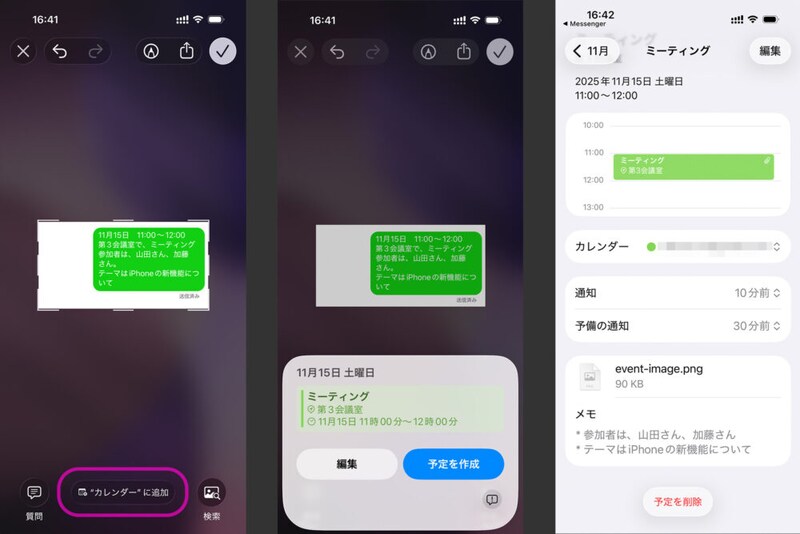 Facebook Messageなどでスケジュールの調整をすることが多い筆者にとってはかなり便利な機能だ。