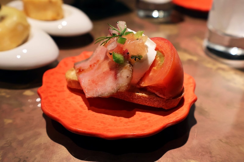 どの前菜も繊細な味付けで美味しかったし、特に「和牛コールドビーフとフルーツトマトのブルスケッタ」は後ほどお出ましとなる焼肉の美味しさの片鱗をうかがわせる逸品。素晴らしい前菜でした。