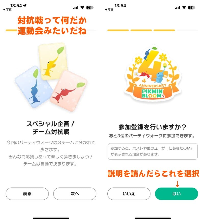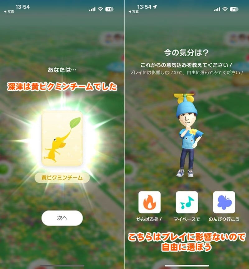 赤青黄ピクミンのどのチームに加わるかがランダムなのでちょっとドキドキするけど事前登録の手続きはとても簡単。
