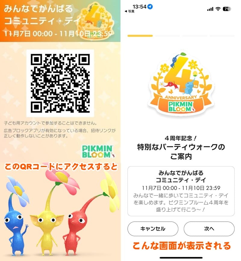 2025年11月1日(土)から始まった位置情報ゲーム『ピクミン ブルーム』の4周年フラワーボックスイベント。