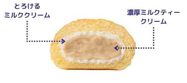 中には、濃厚なミルクティークリームとミルククリームの2層が入っており、口に入れた瞬間から味の変化が楽しめるのが魅力。紅茶の風味をしっかり感じつつ、後味はすっきりと上品。