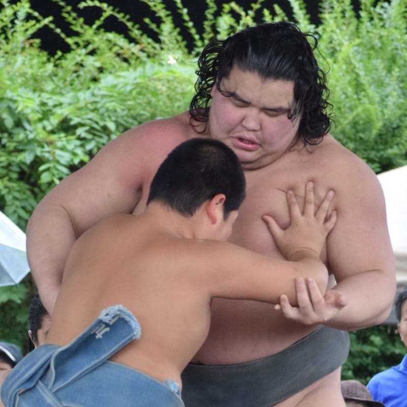 10月25日には神奈川県横浜市で開催された「伊勢ヶ濱部屋 出張稽古 in 新横浜」なる相撲イベントに登場。そこで旭丘高校相撲部の後輩たちや、稽古体験に来た子どもたちに胸を出したり(下の写真)と和気あいあいとした時間を過ごしていた。
