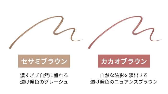 1.1mmの極細楕円芯が目のキワや涙袋、三角ゾーンにもぴったりフィット。ベージュトーンのカラーでナチュラルに陰影をプラス。クリーミィなのに20秒でピタッと密着し、Wプルーフ設計*1でヨレ知らず。